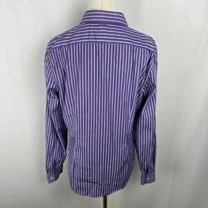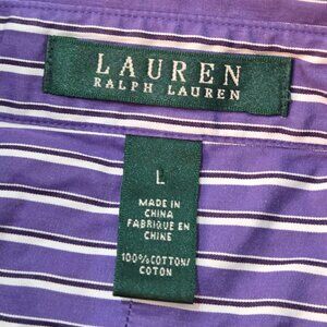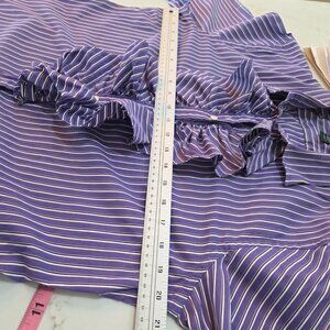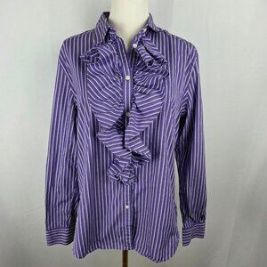 Lauren Ralph Lauren Shirt Large Purple Striped Button-Up Shirt Ruffle Academia