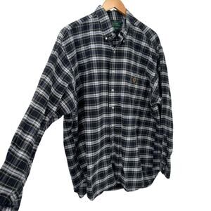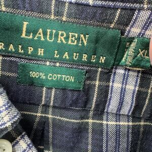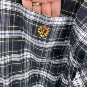 Lauren Ralph Lauren Shirt Mens XL Blue Green White Plaid Button Down Crest Logo Long Sleeve 100% Cotton