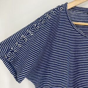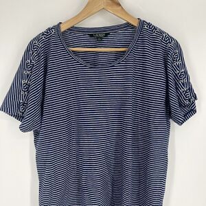 Lauren Ralph Lauren Shirt Size Medium Womens Navy White Striped Linen Nautical