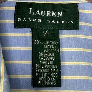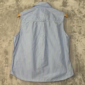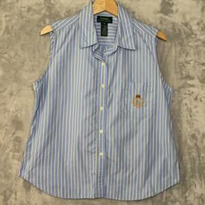 Lauren Ralph Lauren Shirt Womens 14 Blue Striped Sleeveless Button Front Crest