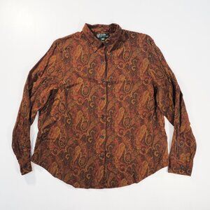 Lauren Ralph Lauren Shirt Womens 1X Brown Button Wool Rayon Retro Granny Cottage