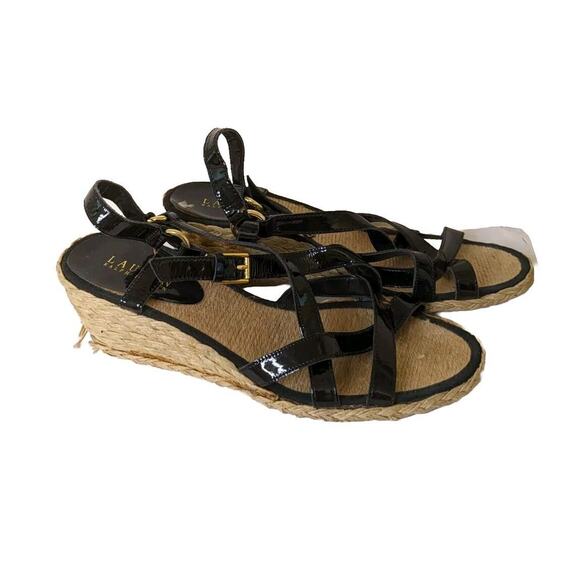 Lauren Ralph Lauren Shoes Espadrille Black Patent Leather Tan Woman’s Size 11