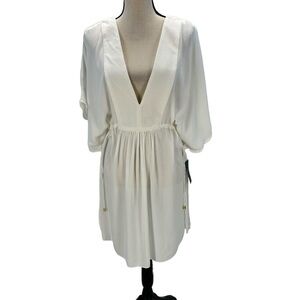 Lauren Ralph Lauren Short Sleeve V-Neck Front & Back Tunic Coverup - White - Lrg