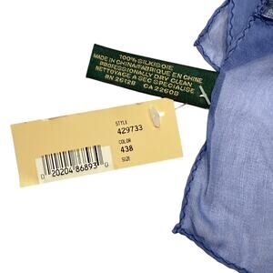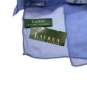 Lauren Ralph Lauren Silk Chiffon Blue Scarf With White Polka Dots NWT 11 x 52"