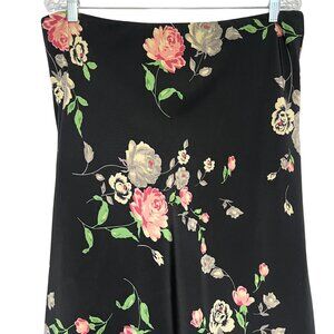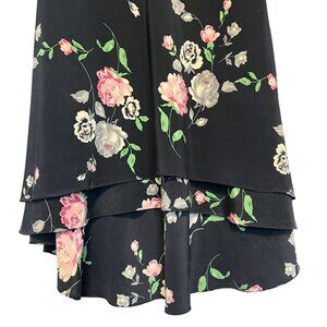 Lauren Ralph Lauren Silk Maxi Skirt Dark Floral Asymmetrical Hem Size 12 Luxury