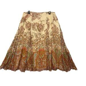Lauren Ralph Lauren Silk Midi Skirt Sz 14 Chiffon Rust Gold Paisley Flare Flowy