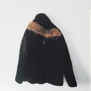 Lauren Ralph Lauren Silk Velvet Puffer Jacket with faux fur around hood