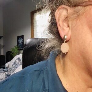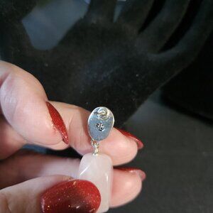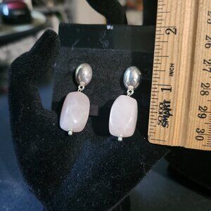 These earrings are gorgeous! Silver with a light pink stone, which measures approximately 3/4" long, the RLL is on the inside of the silver base of these earrings.