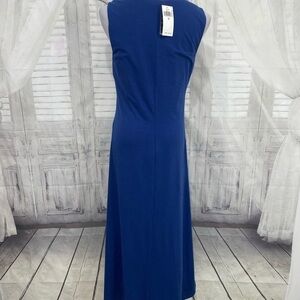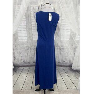Lauren Ralph Lauren Size 10 Solid Blue Sleeveless Dress V Neck Built-in Bra NEW