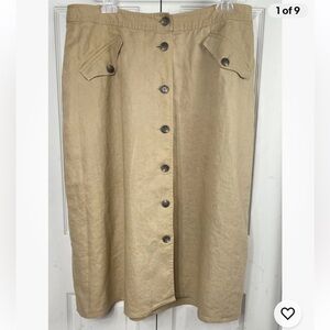 Lauren Ralph Lauren Size 14 W Long Button Down Maxi Skirt 100% Linen W\ Pockets