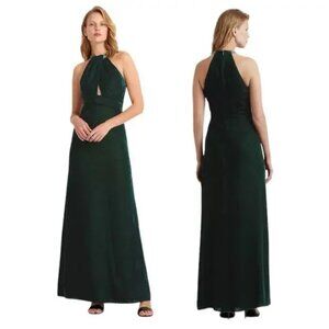 Lauren Ralph Lauren Size 2 Adelbola Green Velvet Beaded Halter Gown Maxi Dress