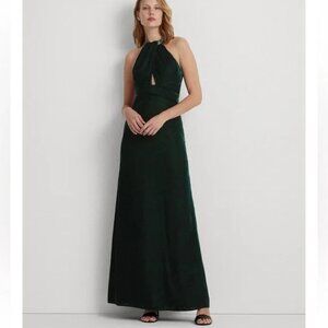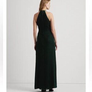 Lauren Ralph Lauren women's Adelbola dark green velvet beaded halter full length maxi gown.