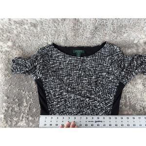 Lauren Ralph Lauren Size 6 Abstract Crisscross Knee Length Sheath Dress Black