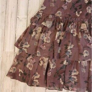 Floral chiffon fabric tiered with ruffles.