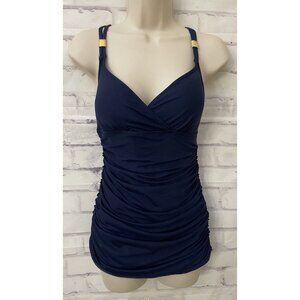 Lauren Ralph Lauren Size 8 Navy Blue Draped Front One Place Slimming Swimsuit