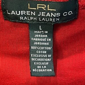 Lauren Ralph Lauren Size Large Red Long Sleeve with Brown Shoulder Zip Detail