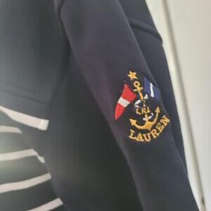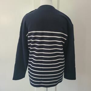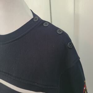 Lauren Ralph Lauren Size SP Petite Shoulder Button Black White Terry Pullover