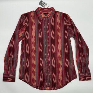 Lauren Ralph Lauren Size Small Red Geo Striped Cotton Voile Button Up Shirt NWT