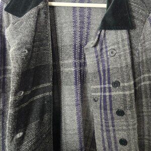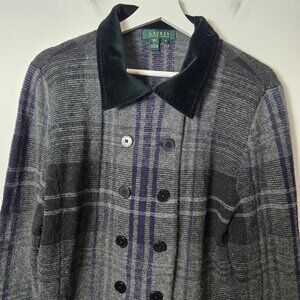 Lauren Ralph Lauren Size XL Double Breasted Lambs Wool Blend Plaid Blazer Velvet Collar Black Gray. Button front closure.