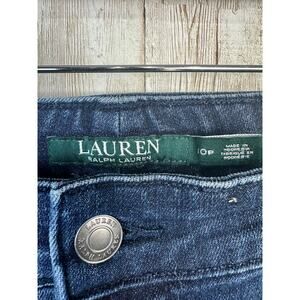 Lauren Ralph Lauren Skinny Crop Jeans 10P Womens Blue Embroidered Denim Floral