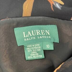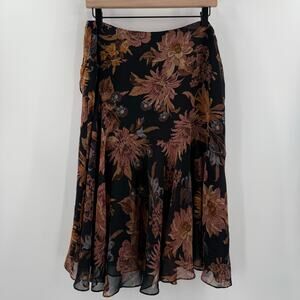 Lauren Ralph Lauren Skirt Size 10 100% Silk Floral Black Tiered Classic Flowy Side Zipper
