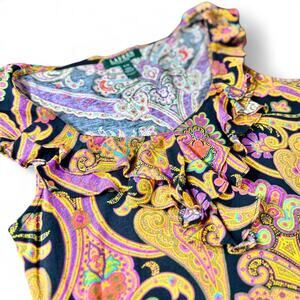 Lauren Ralph Lauren Sleeveless Top M PET Paisley Exaggerated Ruffle Y2K Dopamine