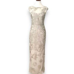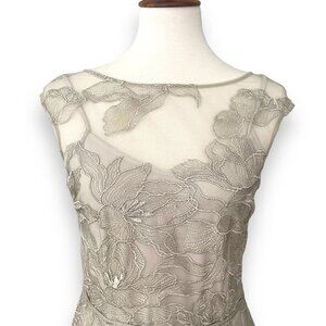 Lauren Ralph Lauren Sliver Sleeveless Floral Mesh Evening Maxi Dress Size 4 NWT