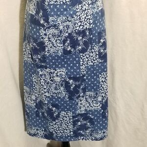 Lauren Ralph Lauren Small Dress Blue Floral Patchwork Print Cotton Blend Knee Length Preppy Boho Beach Vacation Cruise
