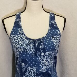 Lauren Ralph Lauren Small Dress Blue Floral Patchwork Cotton Preppy Boho Beach