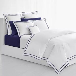Lauren Ralph Lauren Spencer Sateen Border King Duvet Cover in White/Navy NEW