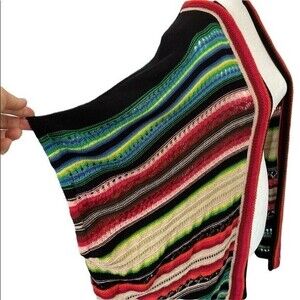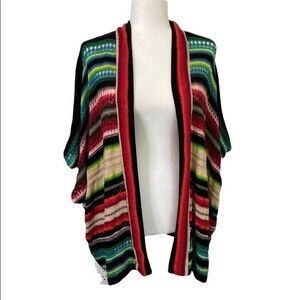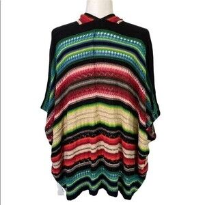 Lauren Ralph Lauren Stripe Multi-Color Southwestern Knit Shrug Poncho Boho Sheik