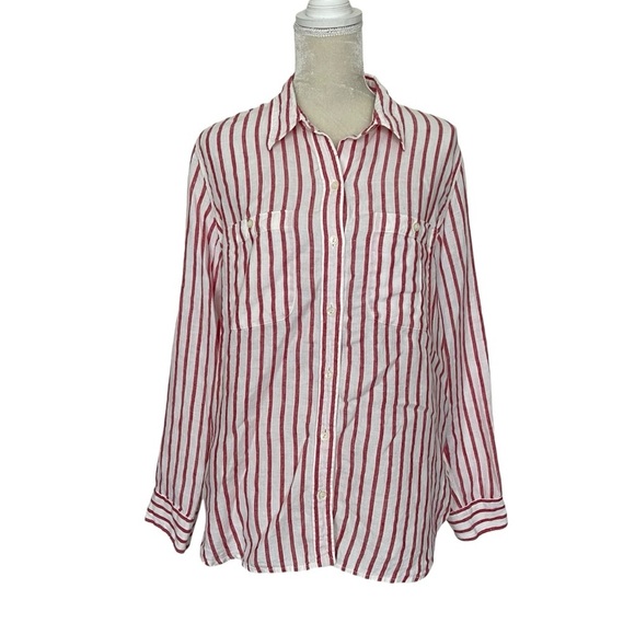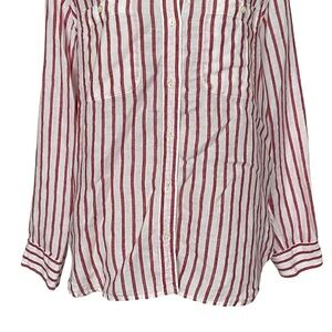 Lauren Ralph Lauren Striped 100% Linen Button Up Shirt Women’s Size XL White Red