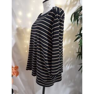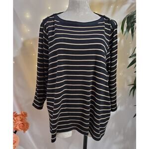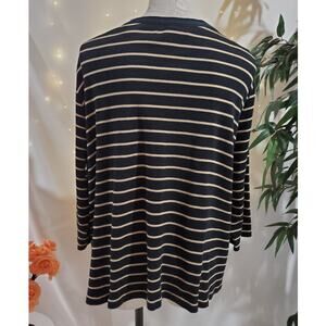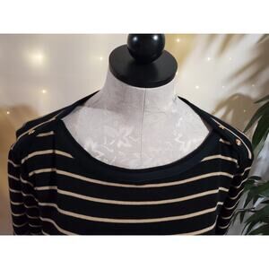 Lauren Ralph Lauren Striped Boat Neck Gold Logo Button Top Womens Sz 3X Neutral