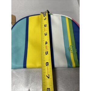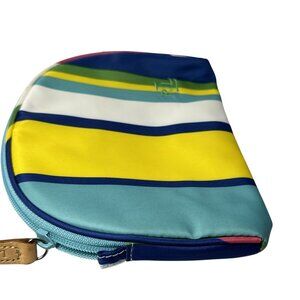 Lauren Ralph Lauren Striped Cosmetic Pouch W/Zipper Closure & Leather Pull