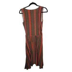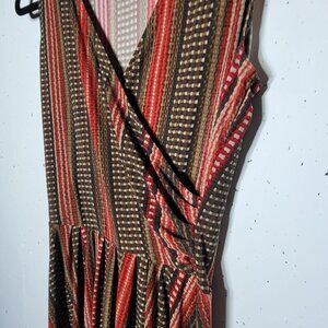 summer spring date night going out flowy stripe asymmetrical vneck v-neck splice print pattern relaxed loose brown red stripe stretch multicolor colorful bright vibrant career business office work church weeding guest easter mature tank top sleeveless boho bohemian Sharkbite mini to midi