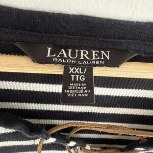 Lauren Ralph Lauren Striped Lace-Up Waffle-Knit Top Leather Drawcord Size XXL