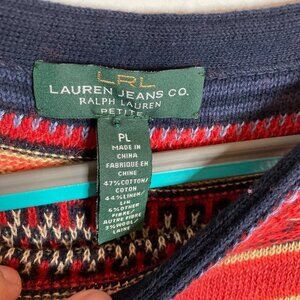 Lauren Ralph Lauren Linen Blend Lightweight Sweater Southwest Aztec Long Sleeve Size Large Petite
