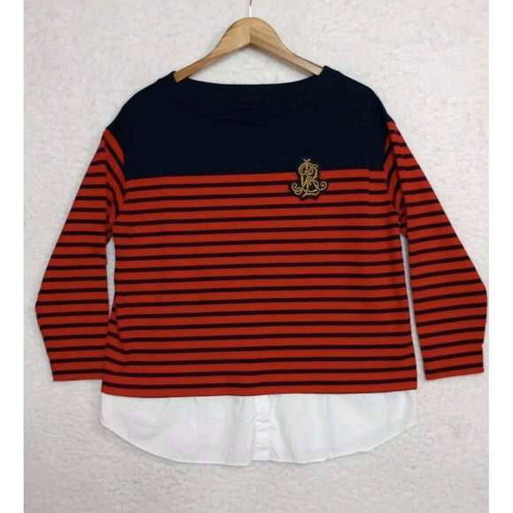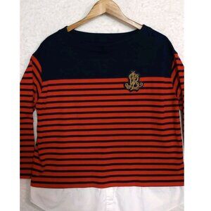 Lauren Ralph Lauren Striped Long Sleeve Top Red & Navy Blue Cotton