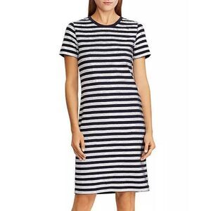 Make a statement in Lauren Ralph Lauren's shift dress, which is decorated with nautical-inspired stripes embellished with eye-catching sequins.