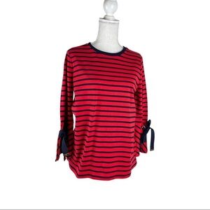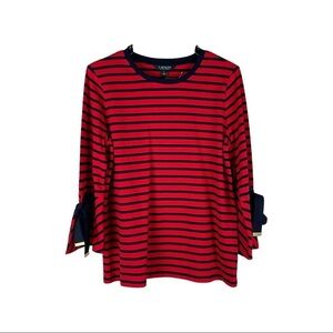 Ralph Lauren Womens Striped Tie-Cuff Top Tomato Red, M