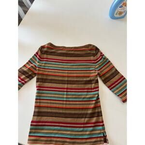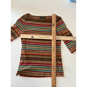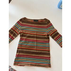 Lauren Ralph Lauren Striped Top Small Suede Trim Classic Heritage Old Money