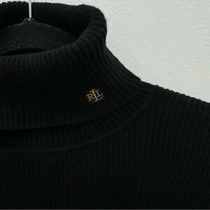 Lauren Ralph Lauren Striped TurtleNeck Sweater black & gold Sz Medium Classic monogrammed RL Ralph Lauren