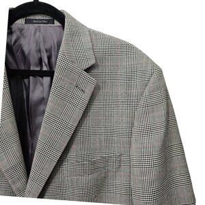 Lauren Ralph Lauren Suit Jacket Houndstooth Silk Wool Black And White Blazer Size 42L