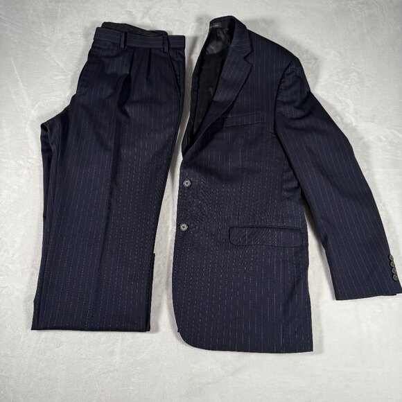 Lauren Ralph Lauren Suit Men Size 44L Gray Striped 100% Wool W38 L29 2-Piece Set