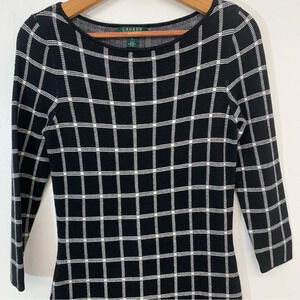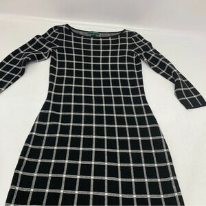 Lauren Ralph Lauren Sweater Dress Small Black White Check Sheath Career Office