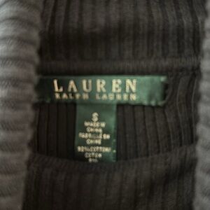 Lauren Ralph Lauren Sweater - Black & Gold Striped Turtleneck - Size S
