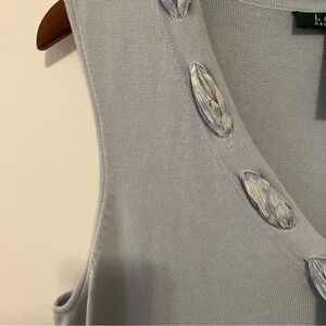 Lauren Ralph Lauren Sweater Vest Womens XL Pale Blue Knit Cotton Preppy Scarf