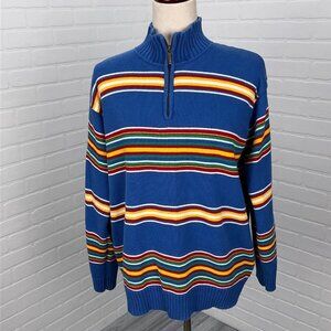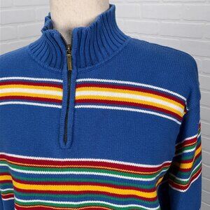 Lauren Ralph Lauren Sweater Women Medium Blue Red Stripe Classic Preppy Cotton