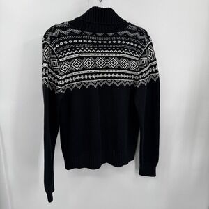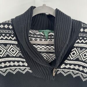 Lauren Ralph Lauren Sweater Womens L Black Fair Isle Shawl Collar Toggle