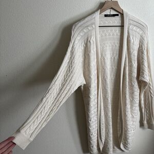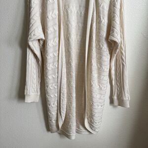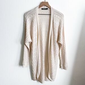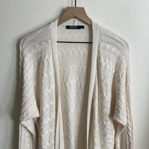 Lauren Ralph Lauren Sweater Womens Large* Ivory Cable Knit Open Cardigan Classic